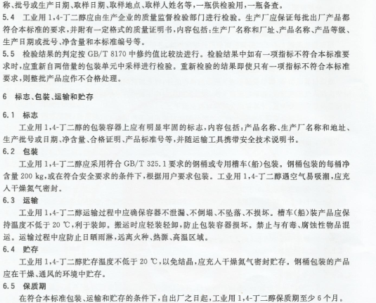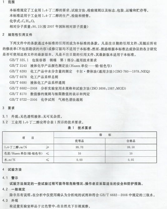 工業用1,4-丁二醇產品標準