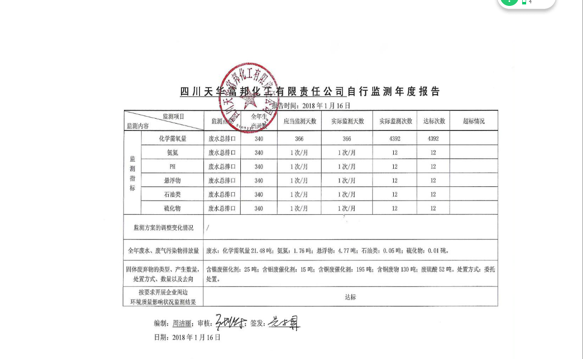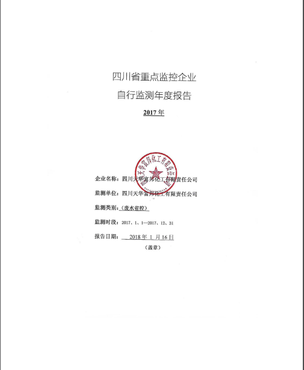 四川天華富邦化工有限責任公司2017年度自行監(jiān)測報告