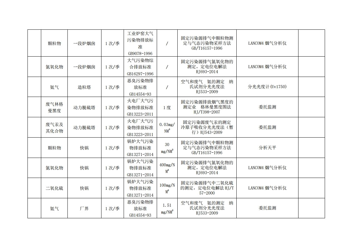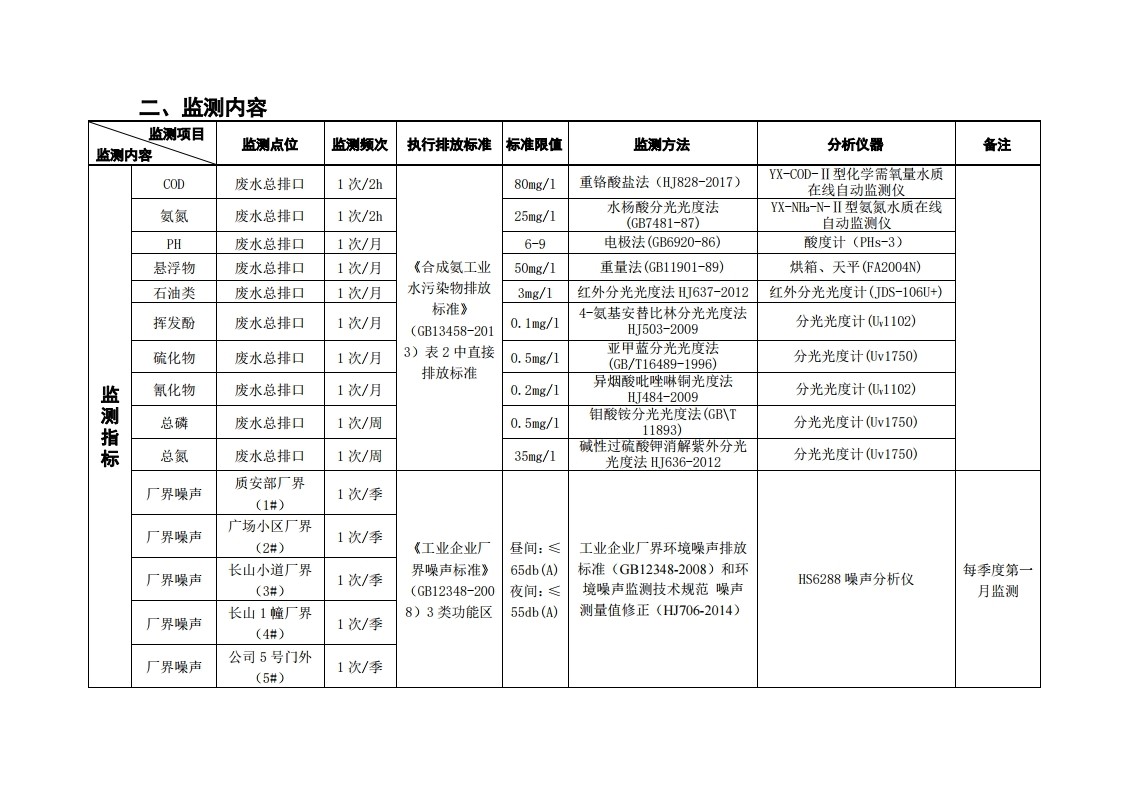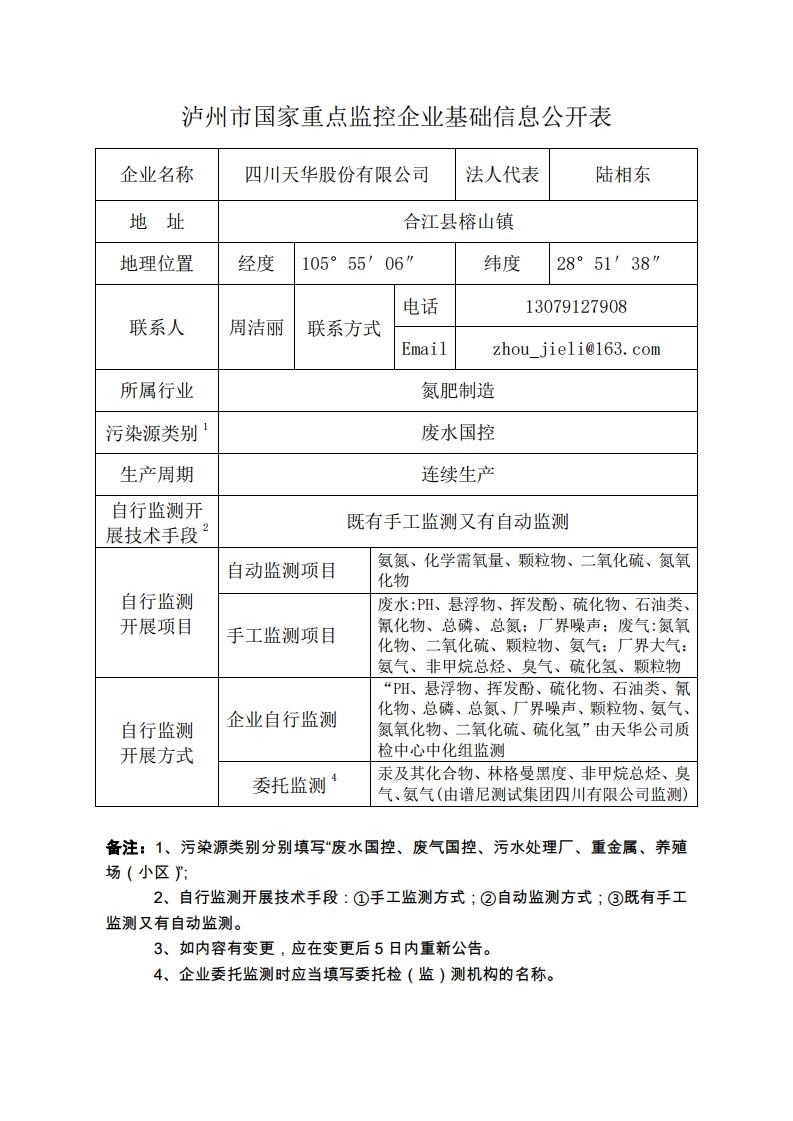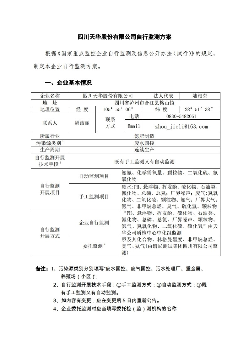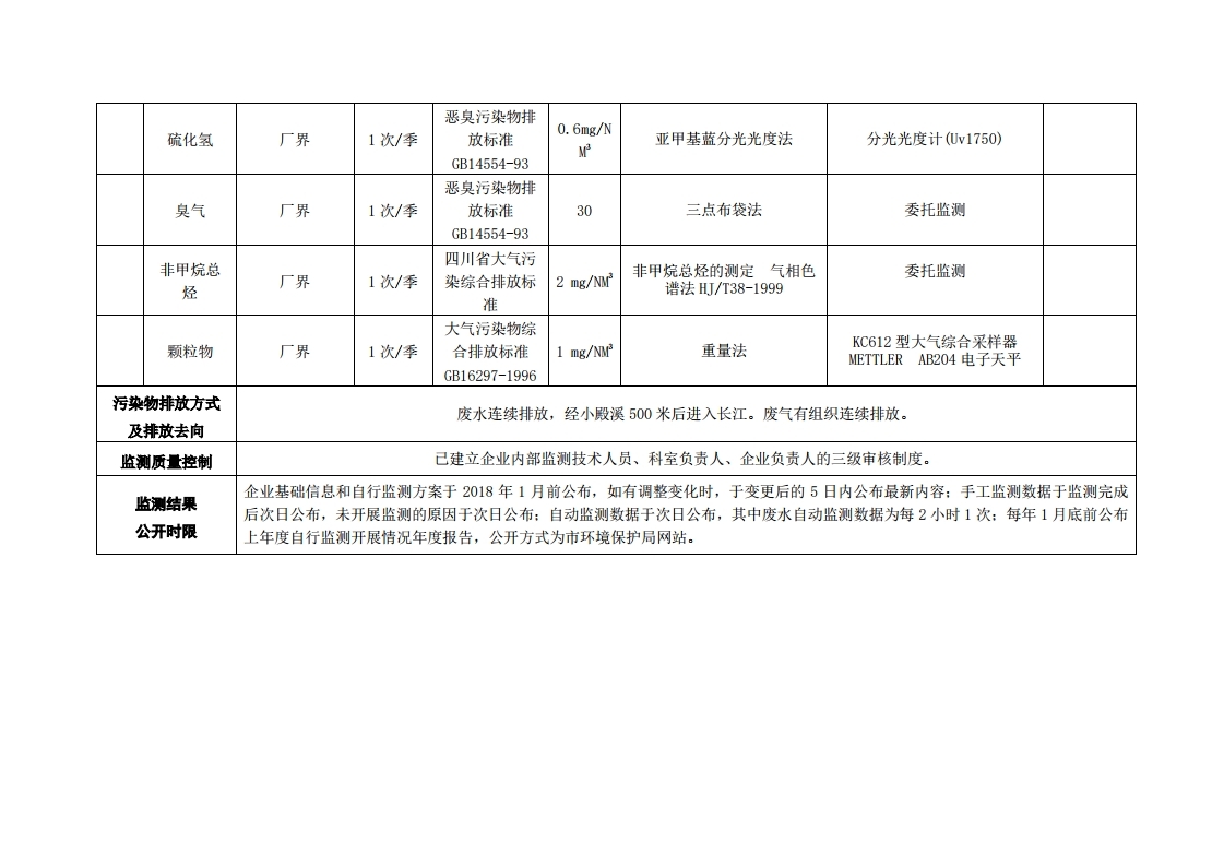 四川天華股份有限公司2018年自行監測方案