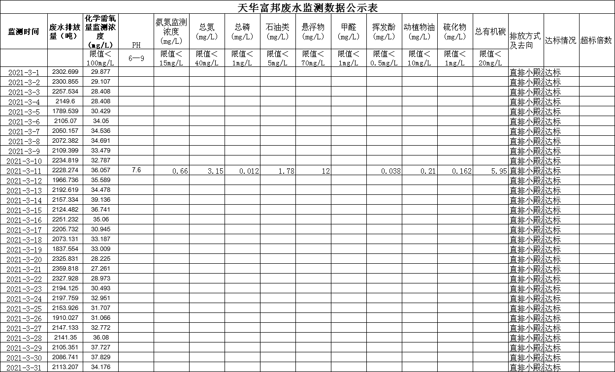 四川天華富邦有限責任公司3月廢水監測公示