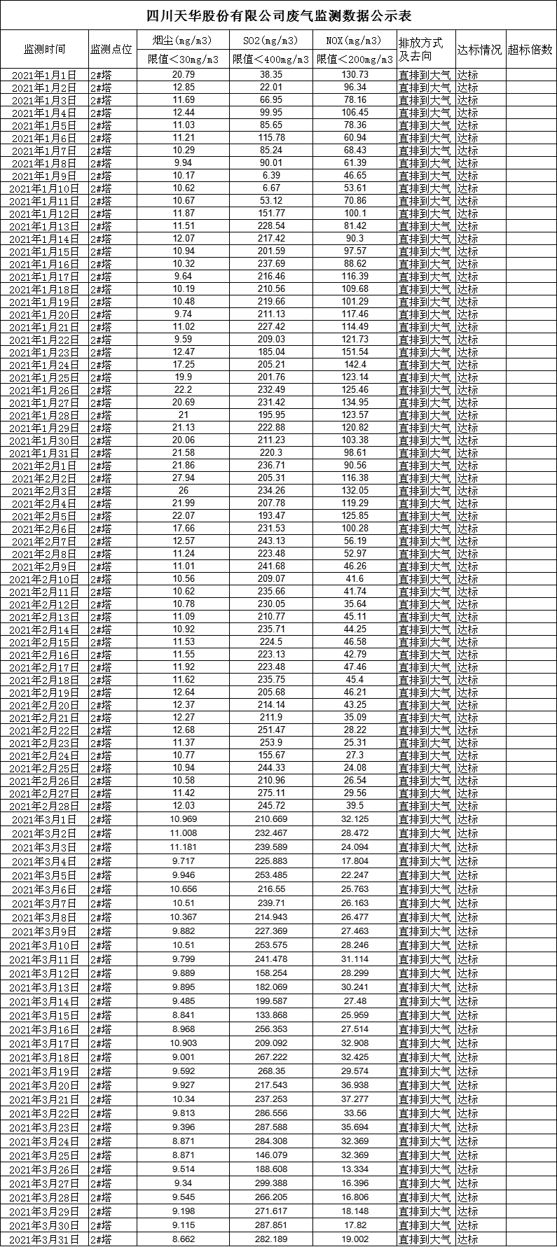 四川天華股份有限公司3月廢氣監(jiān)測公示