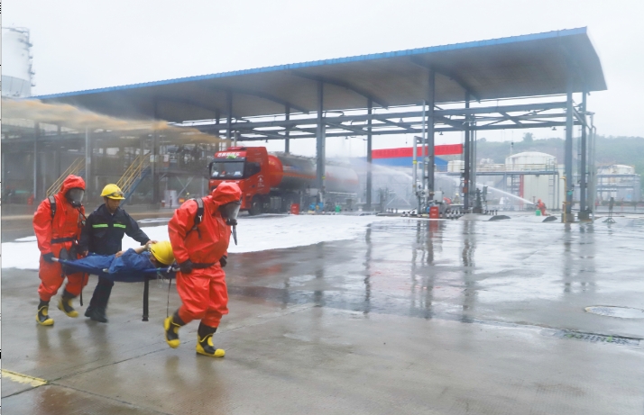 接到報(bào)警后,集團(tuán)立即啟動(dòng)綜合應(yīng)急預(yù)案,圍繞消防救援、泄漏控制、現(xiàn)場堵漏、醫(yī)療救援以及輿情防控等措施展開演練。