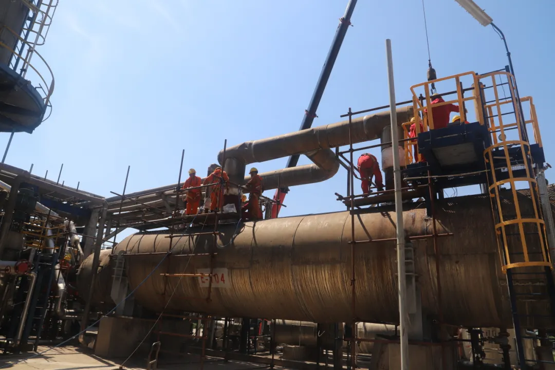 8月8日,集團對供熱裝置2號爐及尿素裝置高壓甲銨冷凝器進行搶修。