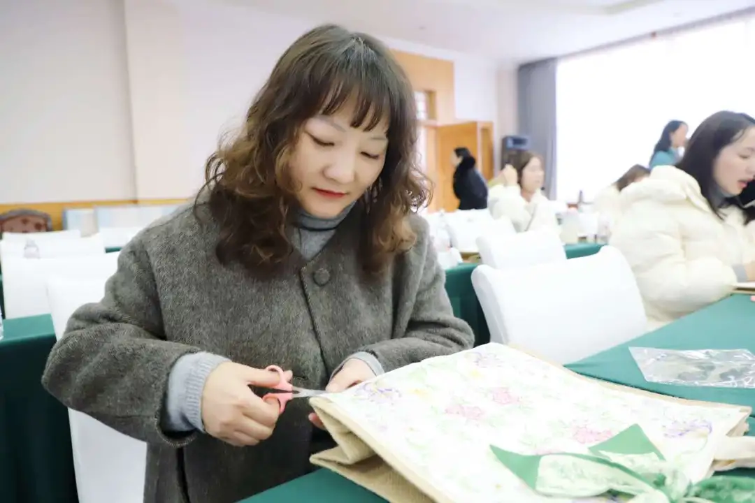 隨后,活動進入“巧手慧心·女工創(chuàng)藝”DIY手工制作環(huán)節(jié)。女職工們在帆布袋上盡情揮灑創(chuàng)意。她們或低頭思考,或相互交流,一個個色彩斑斕、獨具特色的手繪布袋在她們手中逐漸成形。女職工們的臉上洋溢著喜悅和自豪,更體現(xiàn)了對生活的熱愛和追求。