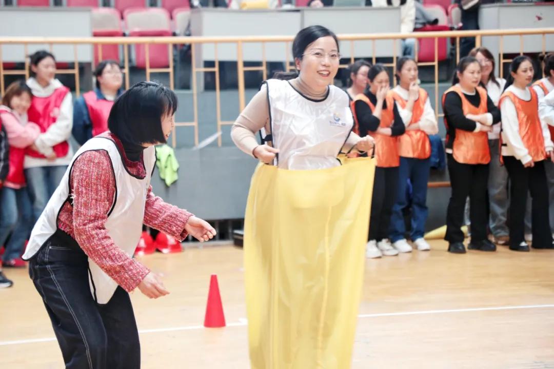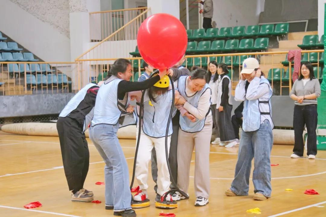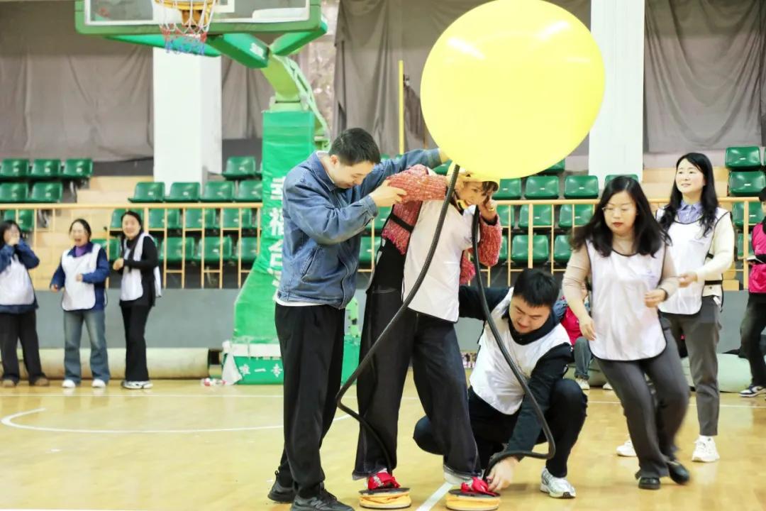 活動在全體人員整齊劃一的工間操中拉開帷幕。大家精神抖擻、舒展身姿,展現(xiàn)出昂揚向上的巾幗風貌。隨后的趣味比賽設置“袋鼠跳”“歡樂踩蹦蹦”“帽力全開挑戰(zhàn)賽”三個項目,既有體力與技巧的較量,更有團隊協(xié)作的比拼。賽場上,選手們你追我趕、默契配合,氣球爆破聲與吶喊助威聲此起彼伏,歡聲笑語洋溢著整個體育館,將節(jié)日氛圍推向高潮。